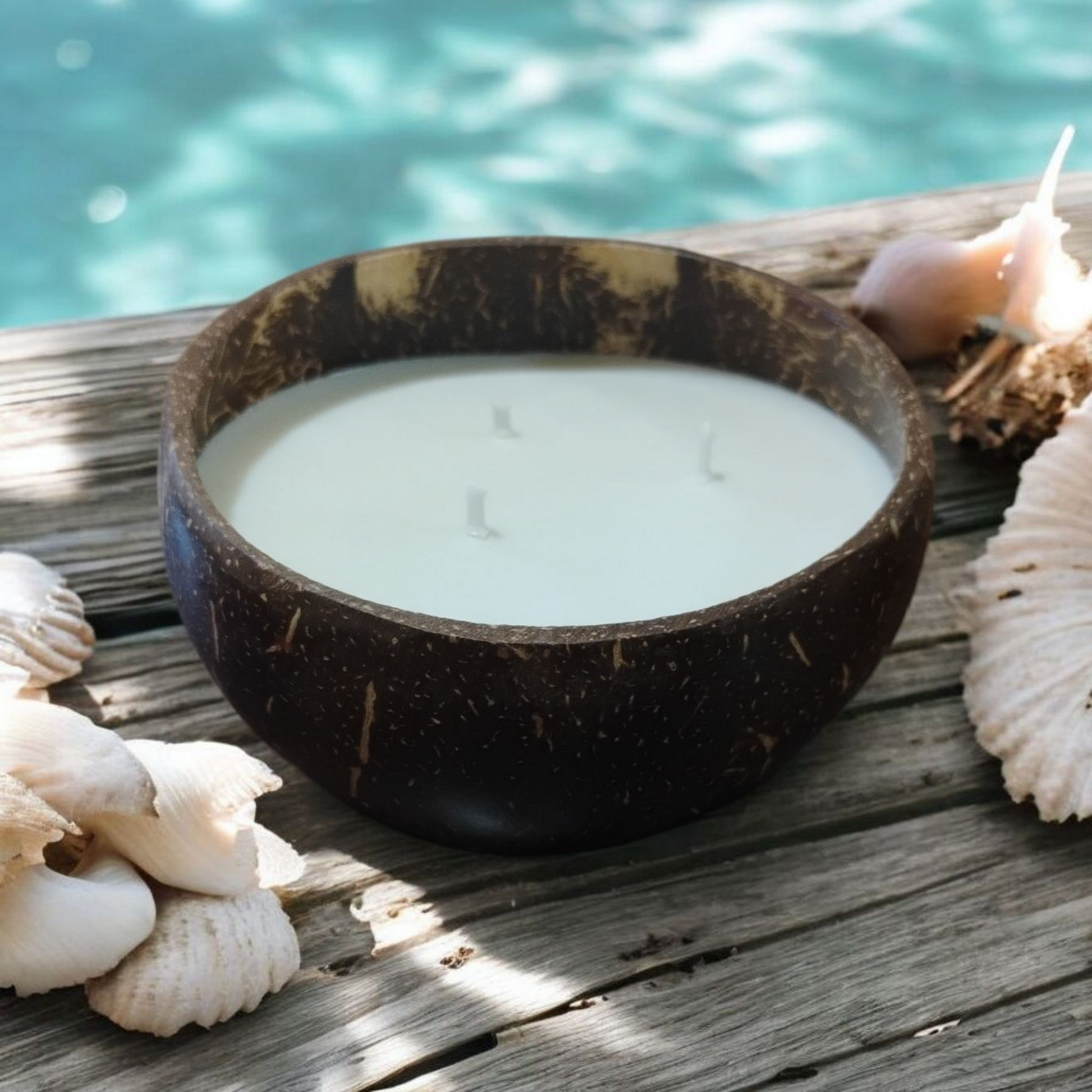 Indulge your senses with our Hand-Poured Soy Wax Candle, thoughtfully crafted in a natural coconut shell bowl for a touch of tropical elegance. Each candle is made with 100% soy wax for a clean, eco-friendly burn and features 3 wicks that add a cozy ambiance to any space. Perfect for gifting or elevating your self-care rituals. With up to 40 hours of burn time, it’s a serene escape in every light.